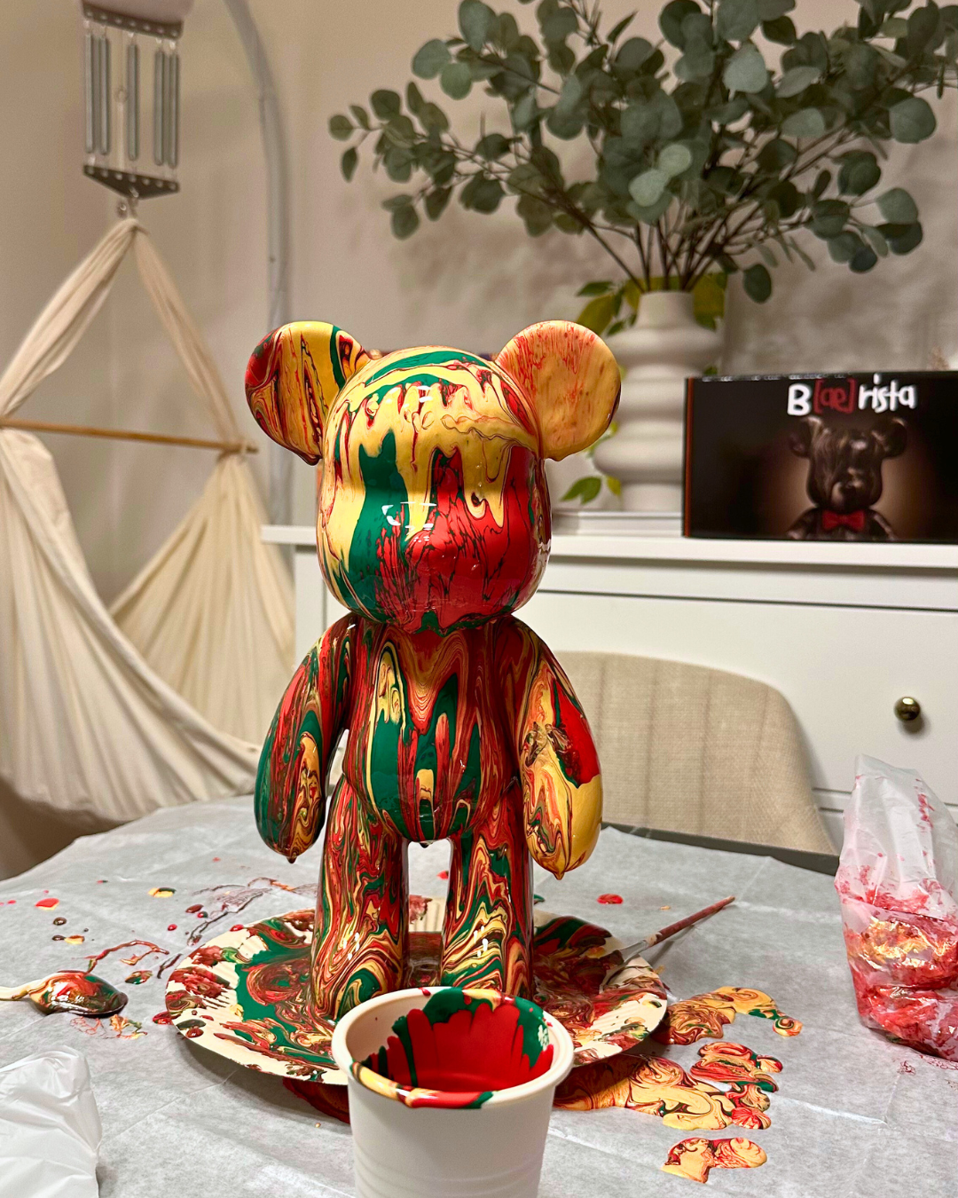 Shake your premium B[ae]rista acrylic paints well, pour them into the cup one by one – and then pour generously over your bear.