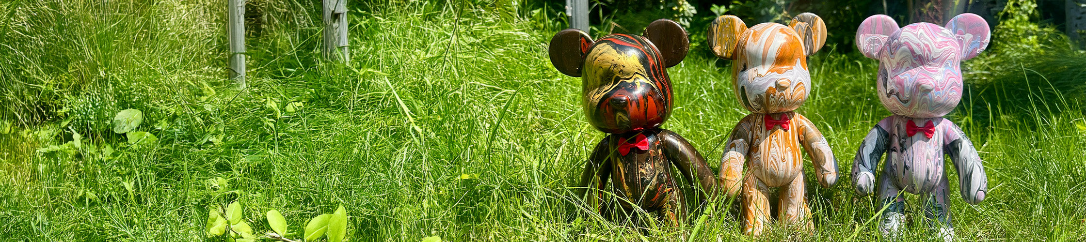 Die Idee entstand aus dem Wunsch, kreativ zu sein. Ohne Druck, einfach mit den Händen. Inspiriert von der fließenden Bewegung, mit der ein Barista Milch in den Kaffee gießt, dachten wir: Warum nicht mit Farbe – auf einem Bären?