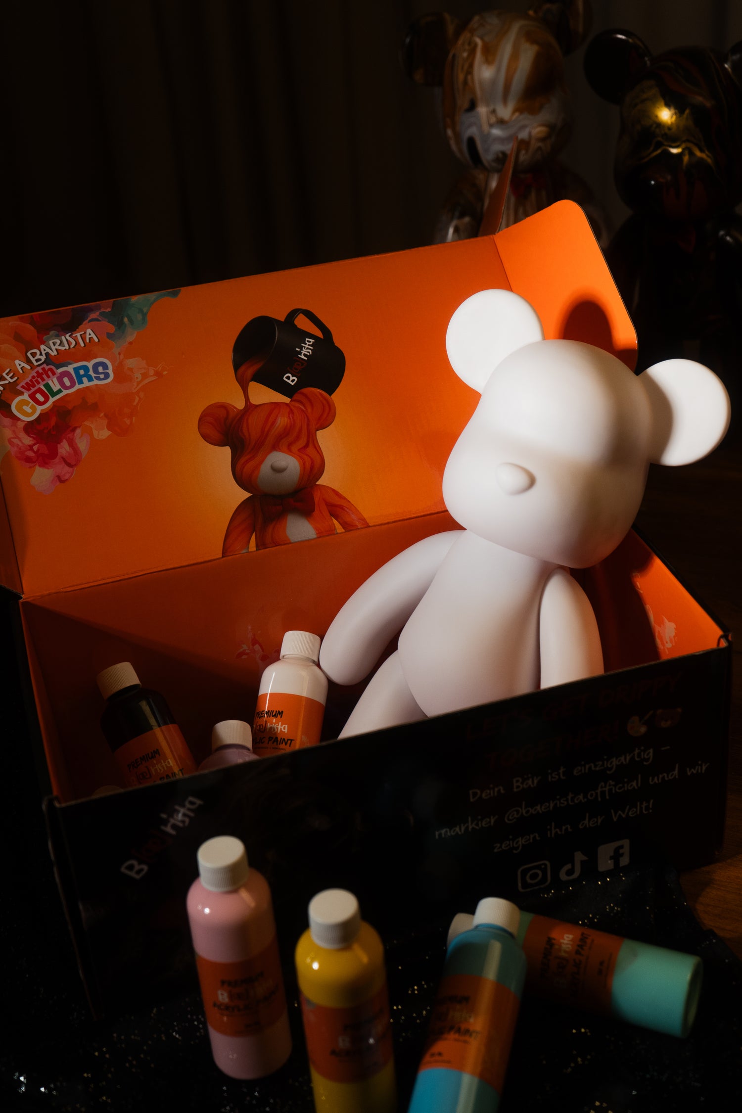 Mit der B[ae]rista Box holst du dir ein kreatives Erlebnis nach Hause. Dein Bär wird so wie du ihn machst: bunt, schlicht oder chaotisch. Es geht nicht um „richtig“ oder „falsch“, sondern darum einfach Spaß zu haben.